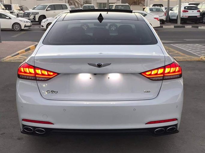 This 2017 Genesis G80 is a first-generation sedan finished in white, offering a refined, understated presence. It’s powered by a 3.8-liter V6 delivering 315 hp, paired with rear-wheel drive and an automatic transmission for smooth, confident acceleration and composed highway manners. With one owner and about 48,000 miles, it has relatively low mileage for its age, and the American-spec trim reflects market-specific equipment. Inside, the cabin emphasizes comfort and quiet, with supportive seats and a clean control layout that blends convenience with a refined driving experi