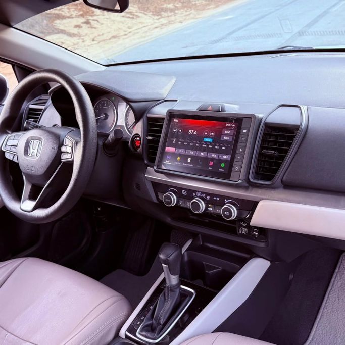 Honda City Khaliji Model 2022 Leather seats + fingerprint playback Anti-skid + ECO system Cruise control + electric steering Rear camera + remote operation USB + Bluetooth input Two agency keys 150,000 km walk AED 35,000 is required Ready to register Exportable