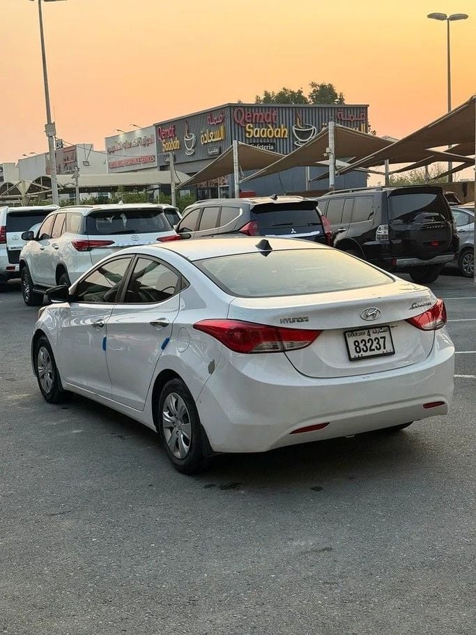 Hyundai Elantra 2014 GCC 1.8 L - 4-cylinder engine - Available in manual or automatic transmission (A/C options depend on the sub-trim) - Power windows and power side mirrors - Fabric seats - Central locking system with remote - ABS and EBD braking system - Dual front airbags - Steering wheel audio controls - Rear parking sensors (optional in some trims) - Halogen headlights - Steel wheels (no alloy rims) - AM/FM radio with CD, USB, and AUX connections - Adjustable steering column