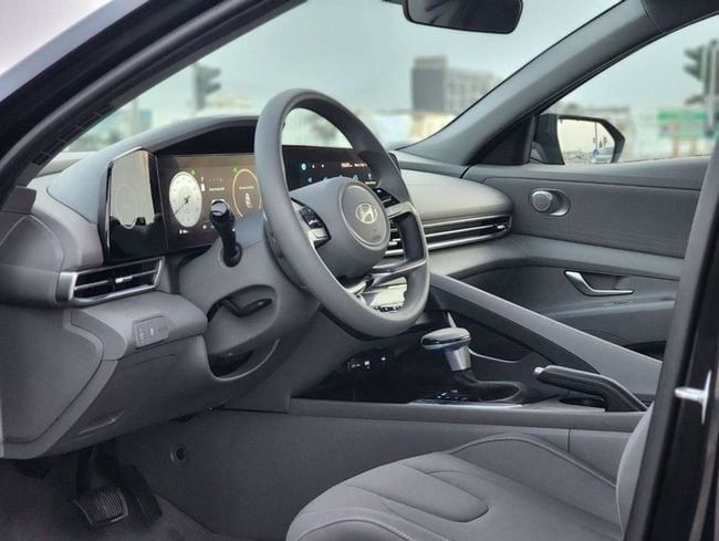 2024 Hyundai Elantra CN7 Facelift in black, a GCC-spec sedan with a single owner and about 1,000 kilometers on the clock, blends practicality with a refined design. It is powered by a 1.6-liter petrol engine producing 128 horsepower, paired with an automatic transmission and front-wheel drive, delivering smooth daily usability and efficient performance. The CN7 facelift brings contemporary exterior styling, while the interior focuses on comfort and ease of use, with Hyundai’s attention to cabin refinement and quiet operation. This car suits daily commuting and light travel,