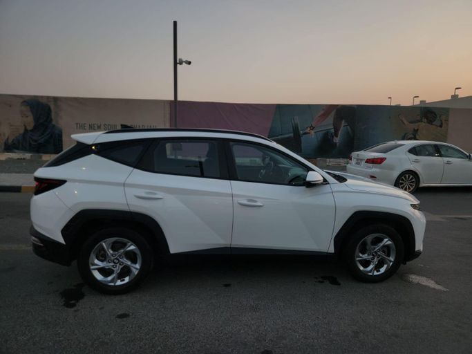 This 2022 Hyundai Tucson (Generation IV) in white is a practical front-wheel-drive SUV with a 2.0-liter petrol engine delivering 150 horsepower, paired with an automatic transmission. It carries GCC specifications and comes from a single owner, with about 150,000 kilometers on the odometer. Built as a versatile 5-door SUV, it emphasizes everyday comfort and easy driving, offering a balanced blend of efficiency and responsiveness suitable for city and highway use. The combination of a reliable drivetrain, clean exterior design, and a straightforward maintenance history makes