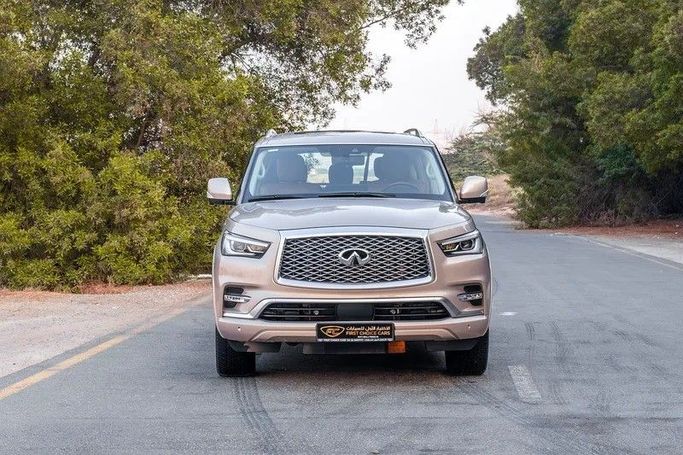 This 2023 Infiniti QX80 I Facelift 3 is a well-kept, full-size SUV powered by a 5.6-liter gasoline V8 producing 405 horsepower, paired with a smooth automatic transmission and all-wheel drive. With a single owner and around 49,303 kilometers on the clock, it presents a practical option for daily use or longer journeys, offering confident highway manners and steady capability in varied conditions. The exterior in grey offers a clean, premium silhouette, while GCC specifications suggest regional tuning and equipment suited to Gulf markets. Inside, the cabin emphasizes space a