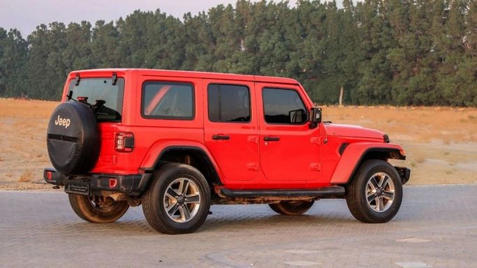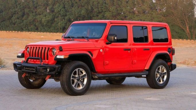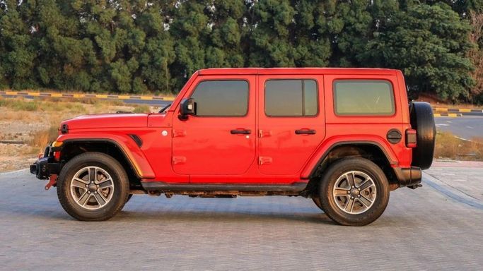 Jeep Wrangler 4x4, Model: 2018, Mileage: 16,300 km, Japanese specifications, Exterior Color: Red, Interior Color: Black, Full Option 1/1. Features include: Keyless Start, Keyless Entry, Front and Rear Parking Sensors, Blind Spot Monitoring, Radar, Rearview Camera, Remote Start, Engine Start/Stop, Heated Seats, Steering Wheel Controls, Cruise Control