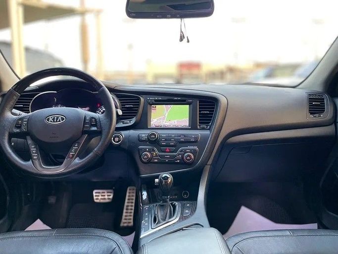 Kia K5 - 2012 - Excellent Condition ! Key Details & Specifications This is a high-specification Korean market model with only 171,074 KM. Engine: 2.0 Liter - 4 Cylinder Turbo GDI Petrol Engine Standard Horsepower: 274 HP (Powerful Turbo Engine) Drive: Front-Wheel Drive (FWD) Seating: 5-Seater Sedan Color: Grey Exterior / Black Leather Interior Performance & High-End Features The Noblesse trim is loaded with premium options: Performance: 6-Speed Tiptronic Automatic Transmission with Paddle Shifters and Dual Exhaust System. Luxury & Comfort: Heated and Cooled (Venti