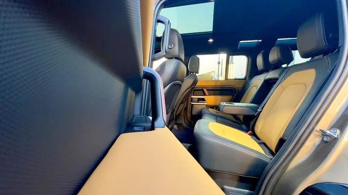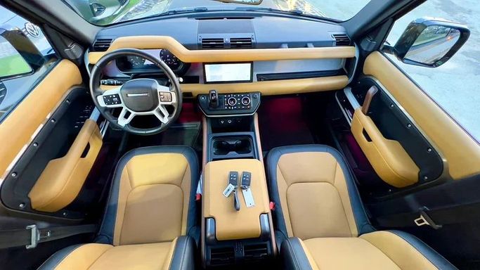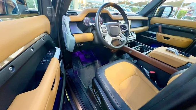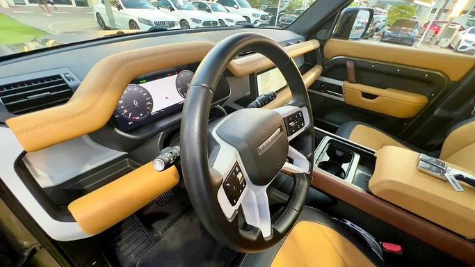 DEFENDER 110CLEAN TITLE P400 V6 LIKE NEW Land Rover Defender 110 – 2024 Specifications: • Clean Title • 6 Cylinders • Only 34,000 km • Accident-free, flood-free – Agency condition • Gearbox, engine & chassis in perfect condition • 2 Original Keys • Customs Documents Full Options: • 360° Cameras • 360° Sensors • Lane Assist • Pre-Collision Warning • Smart Radar • 64-Color Ambient Lighting • 22” Alloy Wheels • Brand New Tires • Panoramic Sunroof • And many more luxury features Used 2024 Land Rover Defender II, a 5-door SUV in brown, blends rugged capability