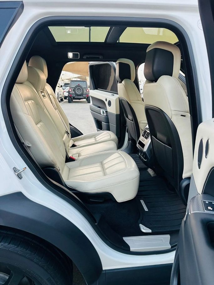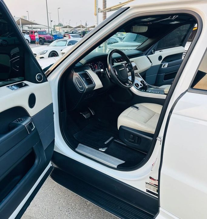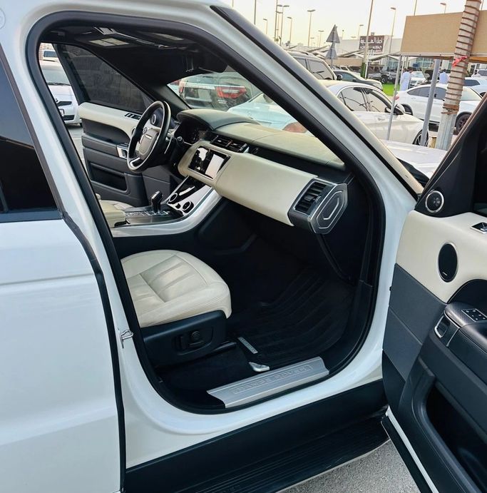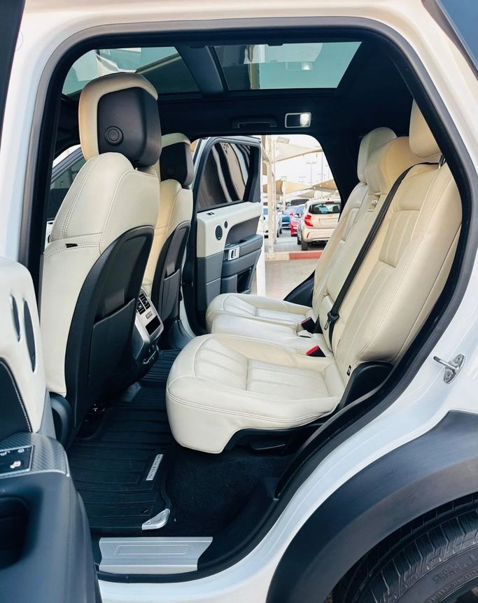 Land Rover Range Rover Sport 8-cylinder supercharged, Canadian import, full specifications, panoramic sunroof, leather interior, large screen, rear camera, fingerprint start, blind spot monitoring, very clean original paint, white exterior, and white interior. Interior - AUX audio input - Air conditioning - CD player - DVD player - MP3 interface Exterior - Performance tires - Premium paint Safety - LED headlights - Rear-wheel drive - Xenon headlights Comfort & Convenience - Fridge - Power locks - Tinted windows Infotainment - Bluetooth system - Infot