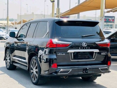 This 2021 Lexus LX, facelifted III, in black is a GCC-spec full-size SUV that has had a single previous owner and about 70,000 kilometers on the clock. It pairs a refined, spacious five-door design with all-wheel-drive capability and an automatic transmission, delivering a balance of comfort and capability for everyday use and longer journeys. Power comes from a 5.7-litre petrol V8 producing 383 horsepower and around 570 Nm of torque, matched to an eight-speed automatic. The drivetrain offers confident highway performance and smooth, predictable shifts, while the AWD syste