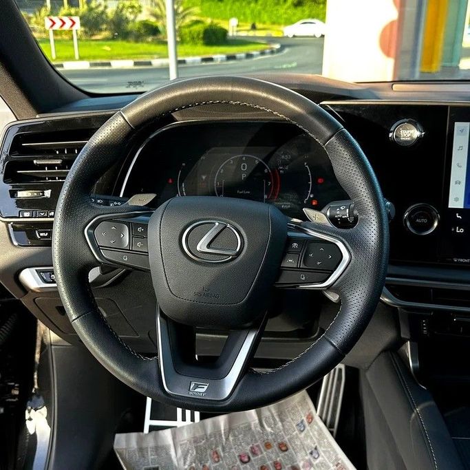 This 2024 Lexus RX V is a one-owner, low-mileage used SUV in black, offering a refined balance of comfort, performance, and practicality. It is powered by a 2.4-liter turbo petrol engine delivering 275 horsepower, paired with an automatic transmission and all-wheel drive for confident handling in varied conditions. Inside, the cabin emphasizes quiet refinement and supportive seating, with high-quality materials and a thoughtful layout that makes daily driving feel effortless. The exterior design showcases the RX’s clean lines and understated sophistication, while the overal