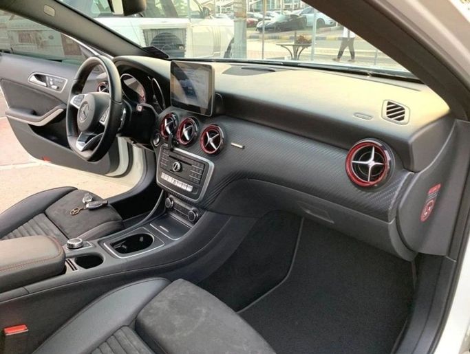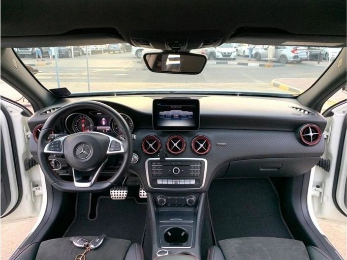 Mercedes-Benz A 250 Sport for sale. Gulf specification, featuring full options including leather interior, panoramic sunroof, large screen, rear camera, fingerprint recognition, and blind spot monitoring. Agency paint with no accidents. Very clean, white exterior with black interior. Interior: - Cruise control - Leather seats - Power seats - USB ports Exterior: - Sunroof - Fog lights - Keyless entry Safety: - ABS - Front and side airbags - Adaptive cruise control Comfort & Convenience: - Navigation system - Rear camera - 360-degree camera Infotainment: - Bluetooth syst
