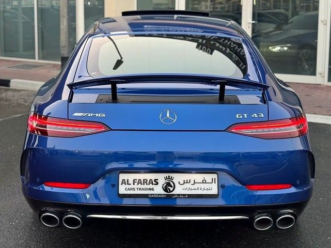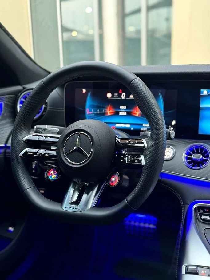 A used Mercedes-Benz AMG GT I Facelift built in 2024, in deep blue, is presented in a Liftback body with all-wheel drive and automatic transmission. Under the hood is a 3.0—liter gasoline turbo engine with a capacity of 367 hp, paired with a 9-speed automatic transmission. The mileage is only about 2,100 km, one owner, the regional specification is Korean samples. This set of features combines sporty dynamics with the comfort of everyday operation: precise handling, smooth acceleration and a well-thought-out driver's space, while the exterior is accentuated by the deep blue