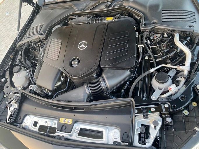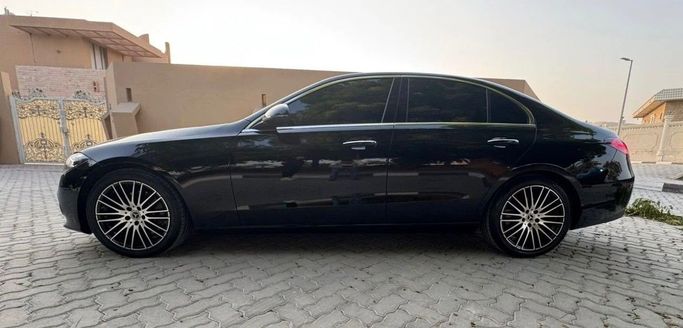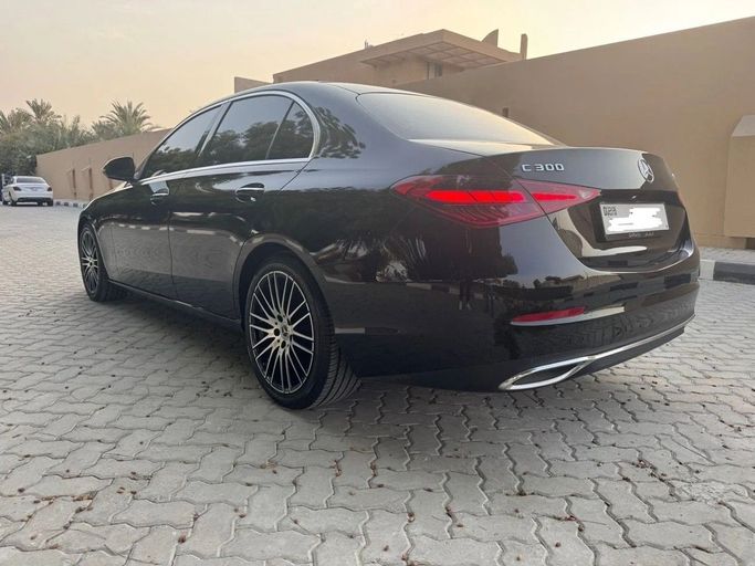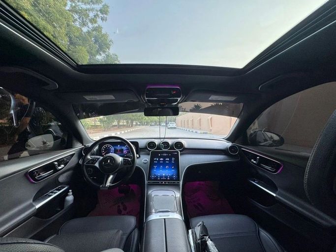 Mercedes-Benz C 300 American import, number one, full specifications. Features include leather interior, sunroof, large screen, rear camera, fingerprint start, and blind spot monitoring. Color: black exterior with black interior. Safety - Rear wheel drive - Xenon headlights Exterior - Performance tires Interior - Air conditioning - CD player - DVD player - Infotainment system - Bluetooth connectivity - USB and auxiliary cable Comfort and Convenience - Power locks
