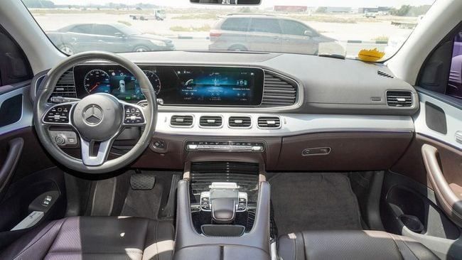 Pre-owned Mercedes-Benz GLE 450 4Matic for sale in Sharjah. White 2019 model, available at Al Nujoom Al Malakiah Used Cars. This car has automatic transmission, 6 cylinders, 20″ wheels and brown interior. 156,000 km, GCC specs.