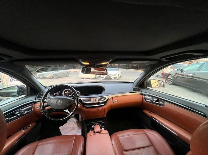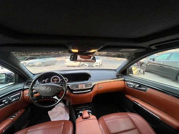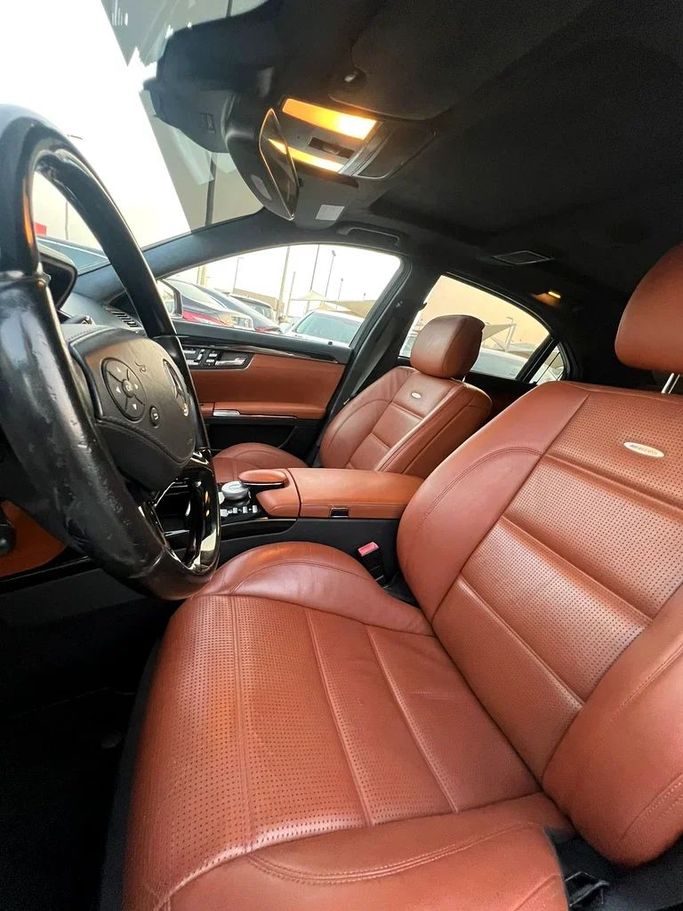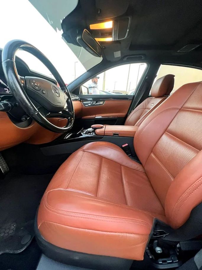 For Sale: 2010 Mercedes S63, original, Gulf model, full option, panoramic sunroof, night vision, in agency condition, with agency keys. Features original saffron leather upholstery and only 145,000 km on the odometer.