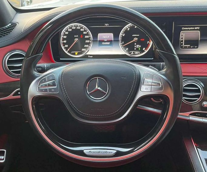 Mercedes Benz S 550, Upgraded 2020, Body kit AMG 63 This pre-owned 2015 Mercedes-Benz S-Class, the sixth-generation W222 sedan (with lineage to the C217), in white embodies a refined balance of luxury and performance. Under the hood sits a 4.7-liter V8 delivering 455 hp, paired with a seven-speed automatic transmission and rear-wheel drive, offering confident acceleration and smooth, quiet cruising. The Long wheelbase variant (500/550 Long) enhances rear-seat space for long-legged comfort and a composed ride. It’s configured to American specifications and has a single owner