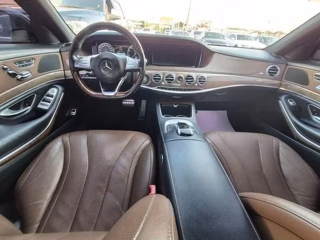 This 2016 Mercedes-Benz S 500 Std 4.7L, is a black long-wheelbase sedan built to GCC specifications. It is a one-owner example powered by a 3.0-liter petrol engine, delivering 333 horsepower, paired with a smooth automatic transmission and rear-wheel drive. The base modification is 400 Long, highlighting the extended rear cabin that defines this variant. With approximately 154,000 kilometers on the odometer, it stands as a solid mix of modern performance and enduring luxury. Inside, the cabin emphasizes quiet comfort and refined materials, with the long-wheelbase layout of