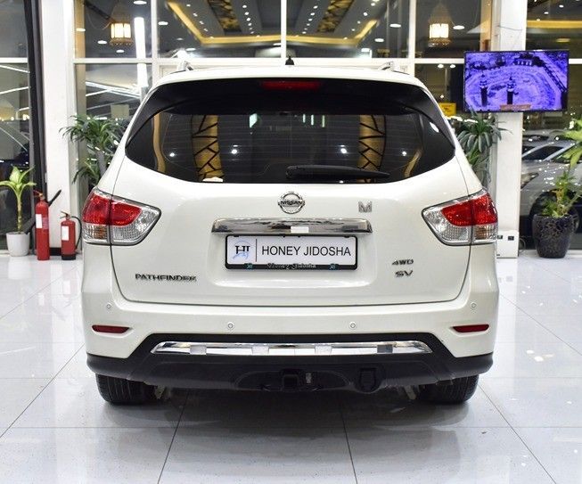 Nissan Pathfinder SV 4WD ( 2015 Model ) in White Color GCC Specs This has done a mileage of 121,000 Km • Specifications • Exterior Color: White Interior Color: Beige Odometer: 121,000 KM Engine: 6 Cylinder Engine Transmission: Automatic Regional Specs: GCC Specs » 7 Seater SUV » Bluetooth » Cruise Control » Fog Lights » Sun Roof » Moon Roof » 4WD Mode Control » Hill Descent Control » Traction Control » Spoiler » Roof Rails » Rear View Camera » Tow Mode Control » Side Airbags » Leather Seats » Power Seats » Navigation System » Parking Sensors » Temperature Control » Digita