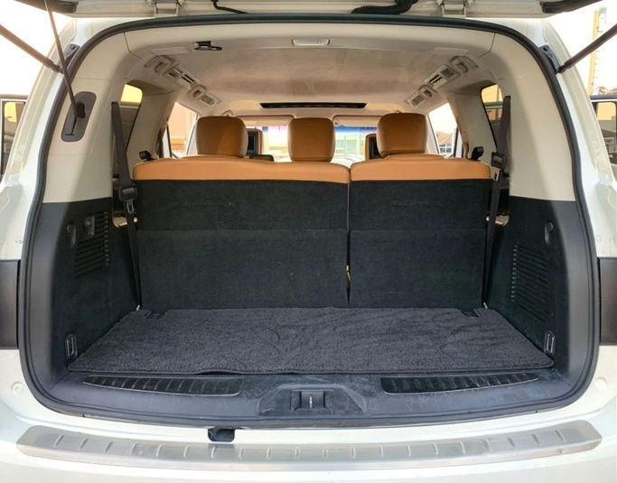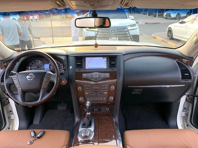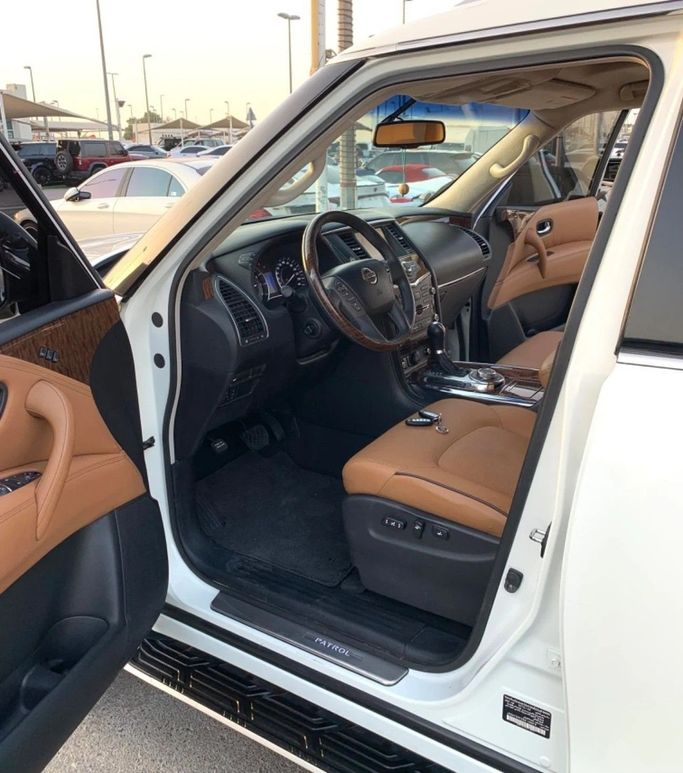 Nissan Patrol Platinum This Nissan Patrol Platinum features a small 8-cylinder engine, equipped with five cameras and comprehensive specifications. It boasts a luxurious leather interior, sunroof, large screen, fingerprint start, and blind spot monitoring. The vehicle has original paint, is accident-free, and is very clean, presented in a white exterior with saffron interior. Interior - Air conditioning - CD player - DVD player Exterior - Premium paint Safety - 4WD - LED headlights - Performance kit (tuned) - Xenon headlights Comfort & Convenience - Fridge - Power lock