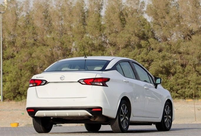 Nissan Sunny Year: 2022 Color: White Specification: GCC Mileage: 60,000 KM Safety Features: - ABS - Airbags (front and side) - Front-wheel drive - Child Lock - Passenger Seat Belt Warning - Door Open Warning Exterior Features: - Fog Lights Interior Features: - AUX audio input - Air Conditioning - CD Player - MP3 Interface - Tuner/Radio - USB - Power Mirrors Infotainment: - Bluetooth System - USB & Auxiliary Cable Comfort & Convenience: - Power Locks - Power Windows - Steering Controls