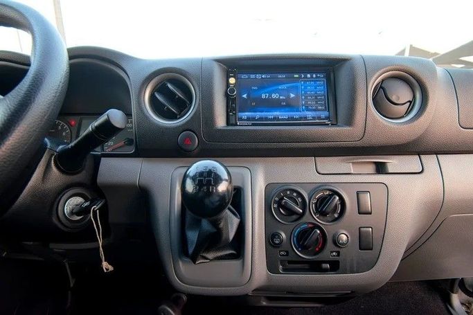 This 2022 Nissan Urvan NV350 (E26) applies a practical and sturdy design as a white, used minivan, suited for family use or small business transport. It is a one-owner GCC-spec model with a 2.5-liter gasoline engine delivering 147 hp, paired with a manual transmission driving the rear wheels. The cabin prioritizes space and durability, with simple, intuitive controls and comfortable seating that can accommodate passengers or generous cargo. The 2.5 L engine provides usable torque for everyday driving and load lifting, while the rear-wheel-drive layout helps with stability w
