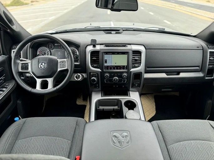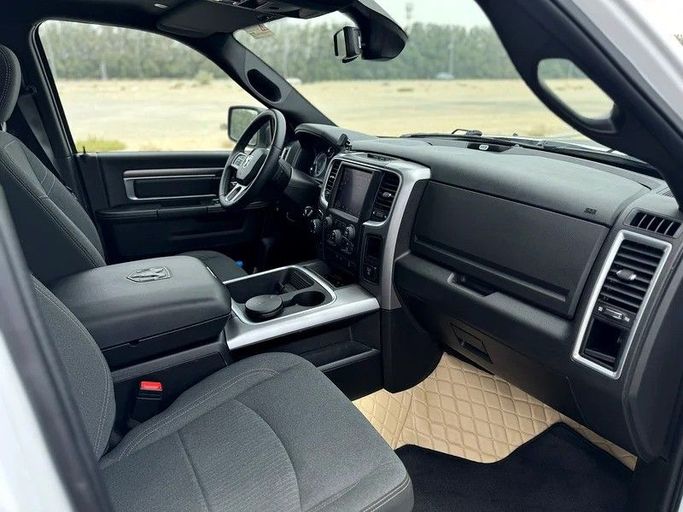 Used 2023 RAM 1500, Generation V, Crew Cab with eTorque 5.7-liter V8 delivering 395 hp. This GCC-spec pickup features a petrol engine, automatic transmission, and all-wheel drive, finished in white. The Crew Cab configuration offers generous rear passenger space and a practical interior layout, while the 395 hp V8 delivers confident acceleration paired with a smooth 8-speed automatic. The eTorque mild-hybrid system helps with smoother starts and better low-end response, enhancing everyday usability. With one owner and 81,000 miles, it presents a straightforward ownership hi