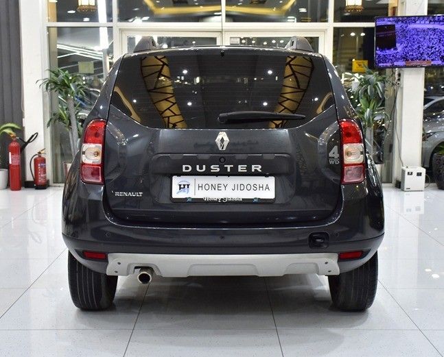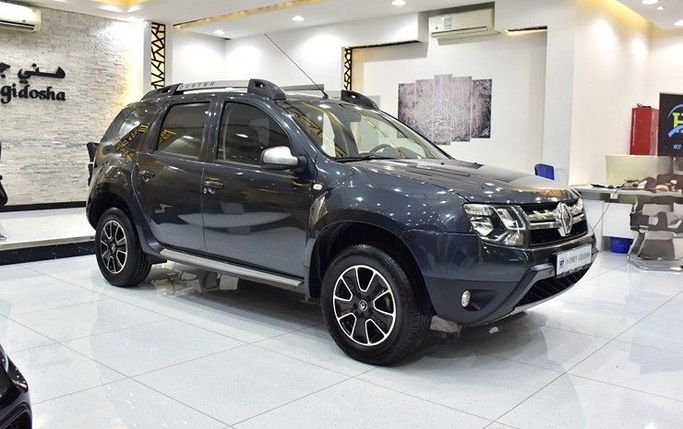 Renault Duster 4WD ( 2017 Model ) in Grey Color GCC Specs This has done a kilometer of 128,000 Km • Specifications • Exterior Color: Grey Interior Color: Black Odometer: 128,000 KM Engine: 4 Cylinder Engine Transmission: Automatic Regional Specs: GCC Specs » 5 Seater Crossover » Bluetooth » Cruise Control » Fog Lights » 4WD ( Hi / Low ) Mode Control » Traction Control » Roof Rails » Rear View Camera » Side Airbags » Leather Seats » Parking Sensors » Temperature Control » Digital Clock » Remote Key ( Door - Lock / Unlock ) » Power Mirrors » Power Windows » Power Locks » All