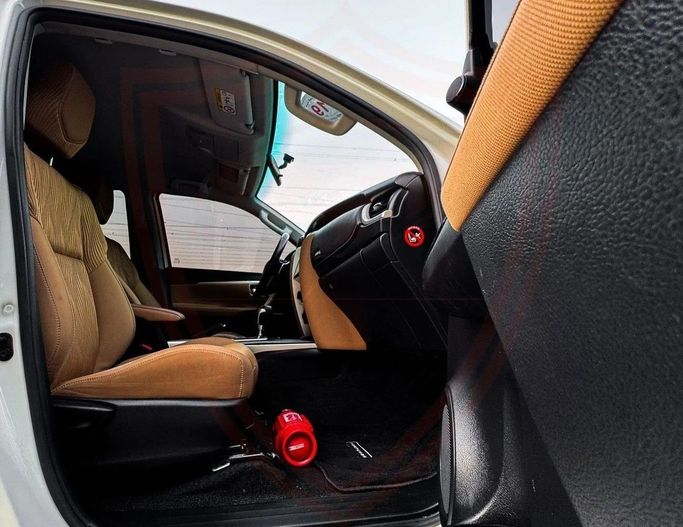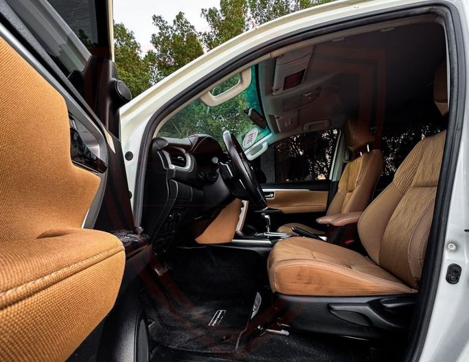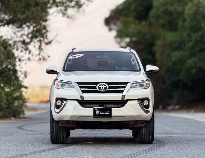 Toyota Fortuner Year: 2019 Color: White Specification: GCC Mileage: 98,000 KM Safety Features: - 4WD - ABS - Adaptive Lighting - Airbags (Front and Side) - Hill Descent Control - Adaptive Cruise Control - Child Lock - Driver Seat Belt Warning - Passenger Seat Belt Warning - Door Open Warning - Speed Sensing Auto Door Lock - Traction Control - Speed Alert Exterior Features: - Fog Lights - Keyless Entry - Off-Road Kit - Side Mirrors with Indicators - Side Steps - Rear Wiper Interior Features: - AUX Audio Input - Air C