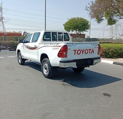 2019 Toyota Hilux, VIII generation, double-cab pickup in white, powered by a 2.7-liter petrol engine delivering 164 hp, paired with a manual transmission and all-wheel drive. This GCC-spec model has had one owner and has clocked about 255,500 km, reflecting steady workhorse use. The Hilux blends durable construction with practical interior space, offering comfortable seating for daily driving and versatile cargo capacity for work or weekend tasks. The AWD setup helps maintain traction in varied conditions, while the manual gearbox provides a direct, engaged driving experien
