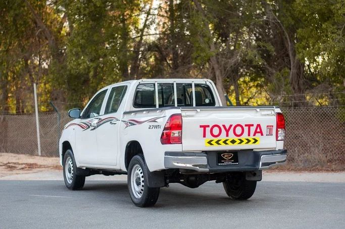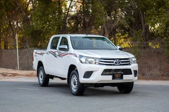 This used 2021 Toyota Hilux GLX VIII Facelift double-cab pickup is finished in white, built for durability and practicality. It runs a 2.7-liter gasoline engine with 166 horsepower, paired with a manual transmission and all-wheel drive for straightforward handling and confident performance across varied surfaces. With a single owner and 134,996 kilometers on the odometer, the vehicle reflects steady use and offers a reliable basis for daily tasks or light-duty work. The GCC-spec designation indicates regional compliance and equipment tuned to local conditions, while the br
