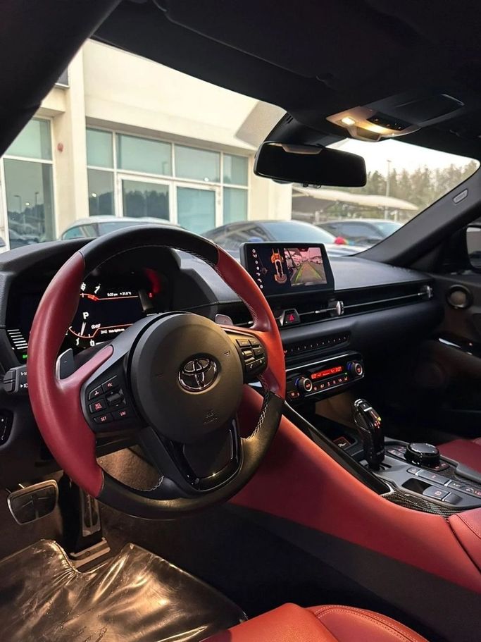 This 2022 Toyota Supra V (A90) Coupe in silver combines high-performance capability with everyday usability in a well-kept package. It carries a one-owner history with about 22,000 miles, offering a relatively low-mileage example of the 3.0-liter turbocharged inline-six that produces 387 horsepower. The power is managed through an automatic transmission to rear-wheel drive, delivering responsive acceleration and a focused, tactile driving experience. As a GCC-spec model, it is tuned for regional conditions while preserving the Supra’s characteristic low-slung silhouette and