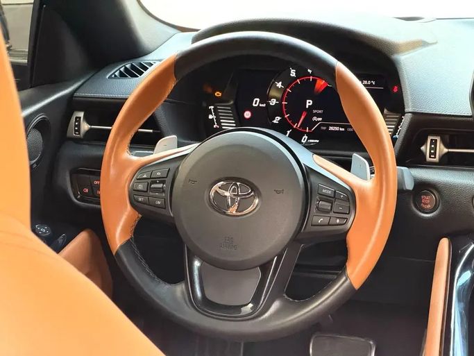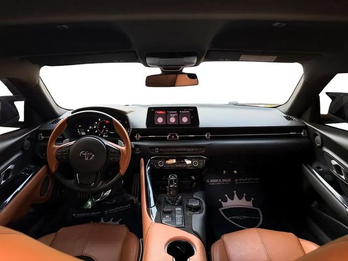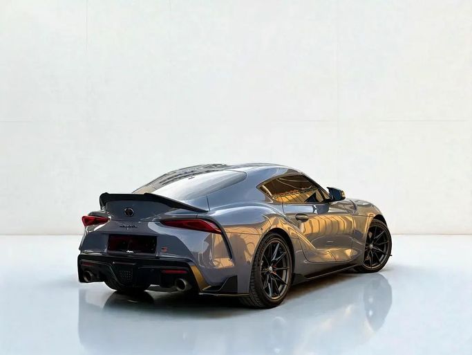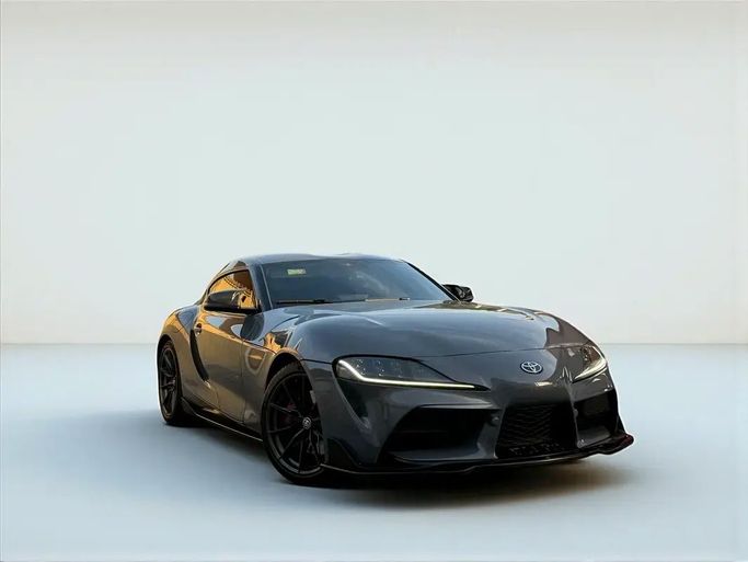 This 2023 Toyota Supra GR BR V (A90) is a grey two-door coupe powered by a 3.0-liter turbocharged petrol engine delivering 387 horsepower, with an automatic transmission sending drive to the rear wheels. It comes from a single owner and wears GCC specifications, with about 70,000 kilometers on the odometer. The design emphasizes a low, sculpted silhouette and a driver-focused cockpit, where supportive seating and a concise control layout balance everyday comfort with an engaging sense of performance when you push it. The overall package blends strong straight-line punch wit