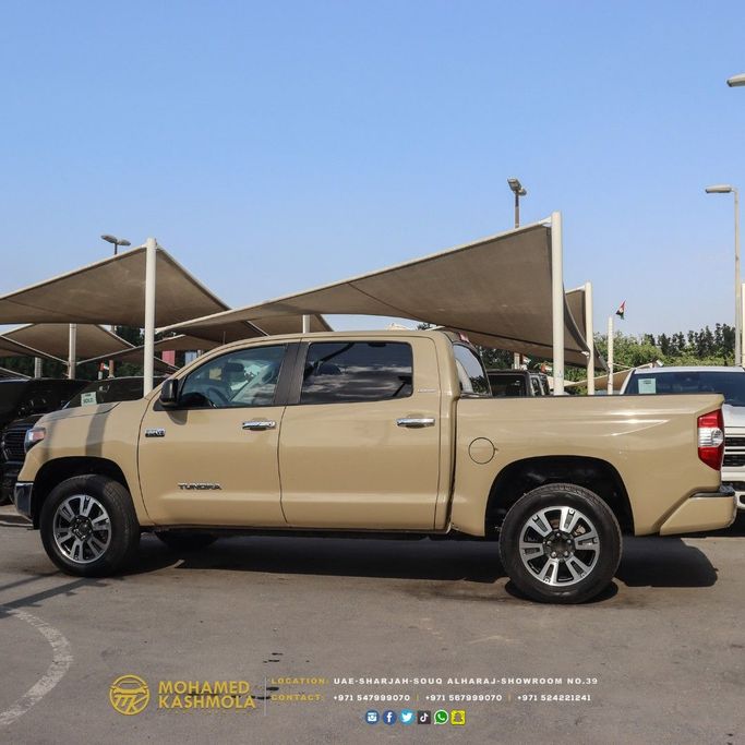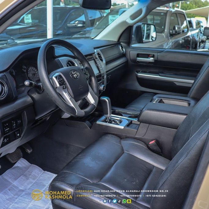 An impressive 2016 Toyota Tundra pickup truck in a unique golden color is on sale. This model, belonging to the II facelift, is specially designed for those who are not afraid to set ambitious goals and strive for real comfort on the road. With a powerful 381 hp petrol engine and an automatic transmission, the Tundra provides excellent dynamic performance and ease of operation. Rear-wheel drive adds extra stability and confidence on a variety of surfaces. The mileage of this car is only 23,000 km, and it was in the hands of only one owner, which indicates its excellent con