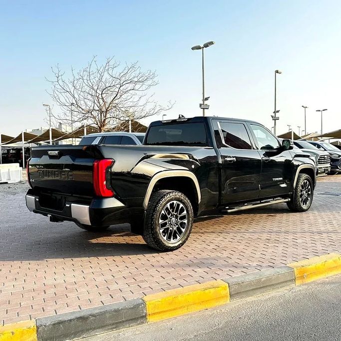 This 2023 Toyota Tundra is a used III-generation double-cab pickup finished in black. It features a 3.4-liter petrol engine delivering 389 hp, matched to an automatic transmission and all-wheel drive, offering strong performance and reliable traction in varied conditions. With a single owner and about 77,500 km on the odometer, it presents a balanced package of capability and dependability. The interior and cargo setup suit daily work needs and family trips, while the regional specification is listed as Other, indicating a non-local market variant. Overall, this Tundra comb