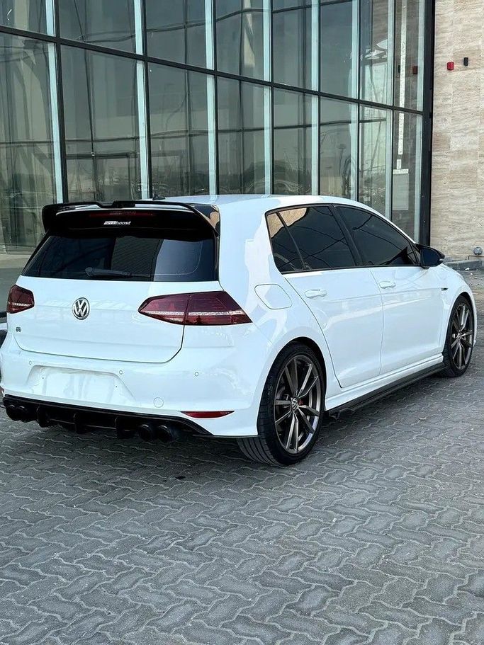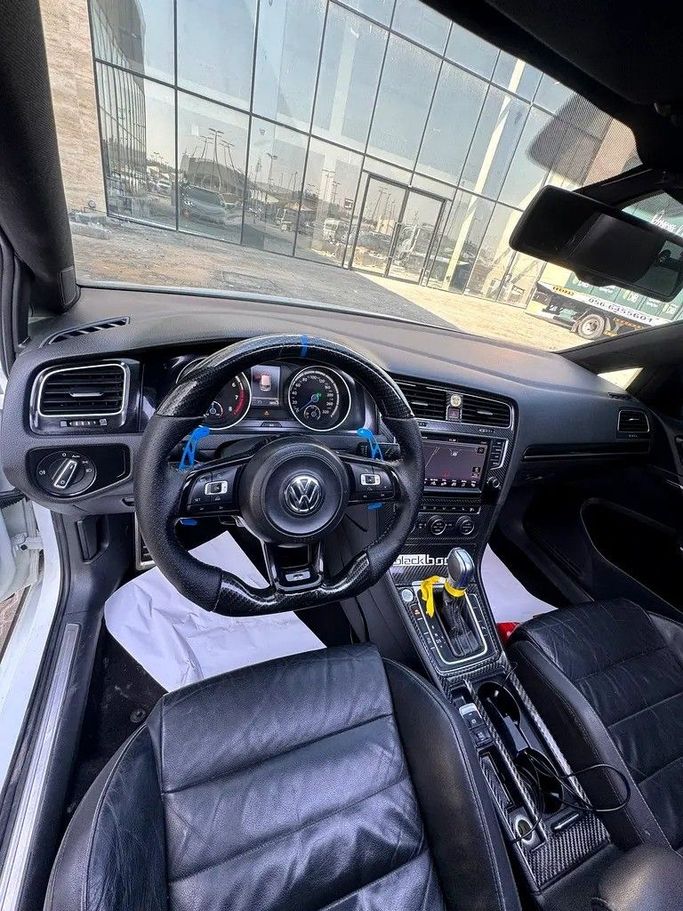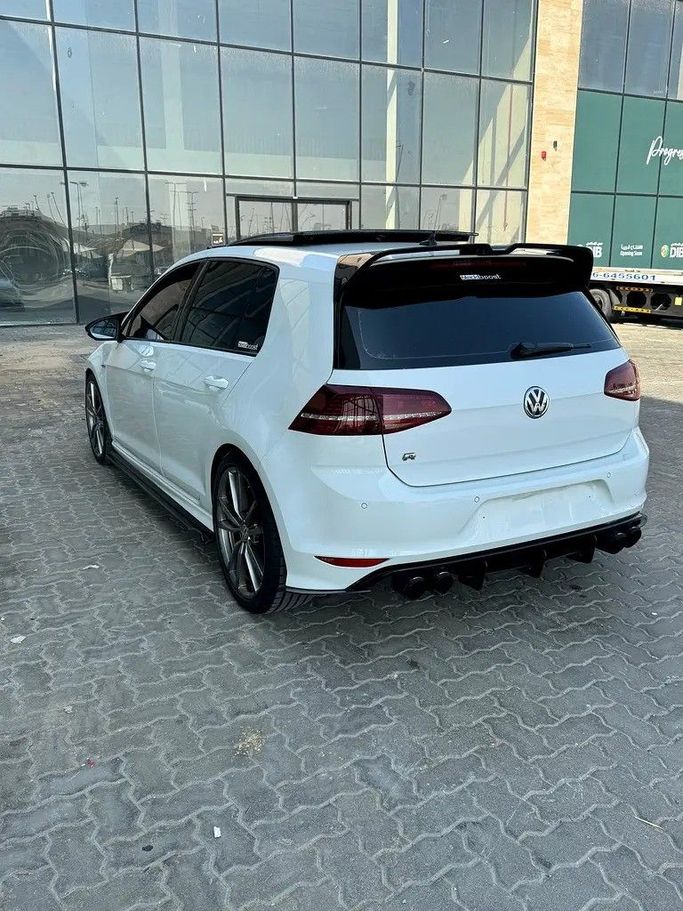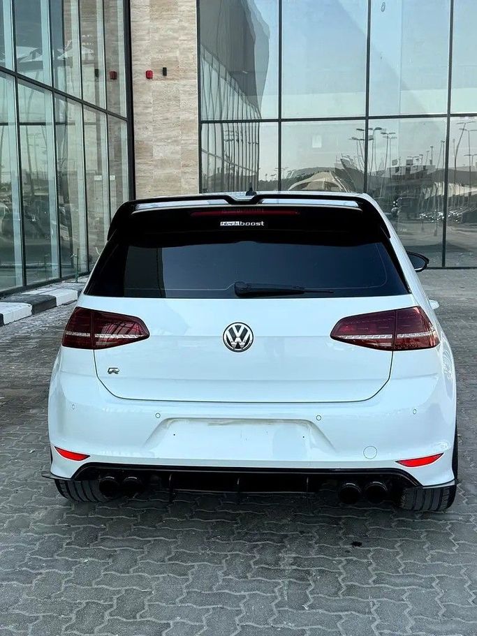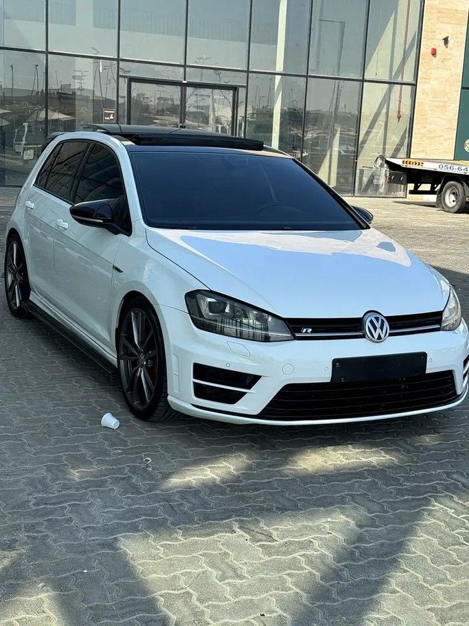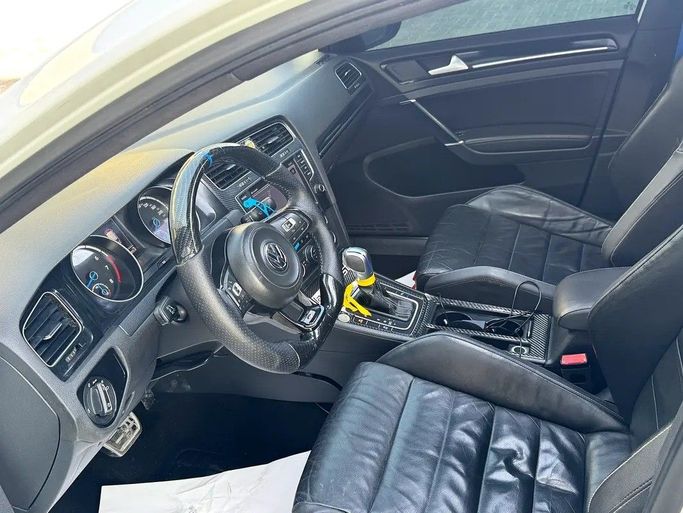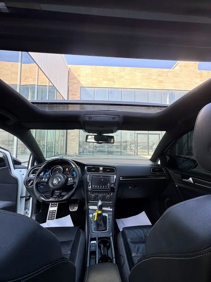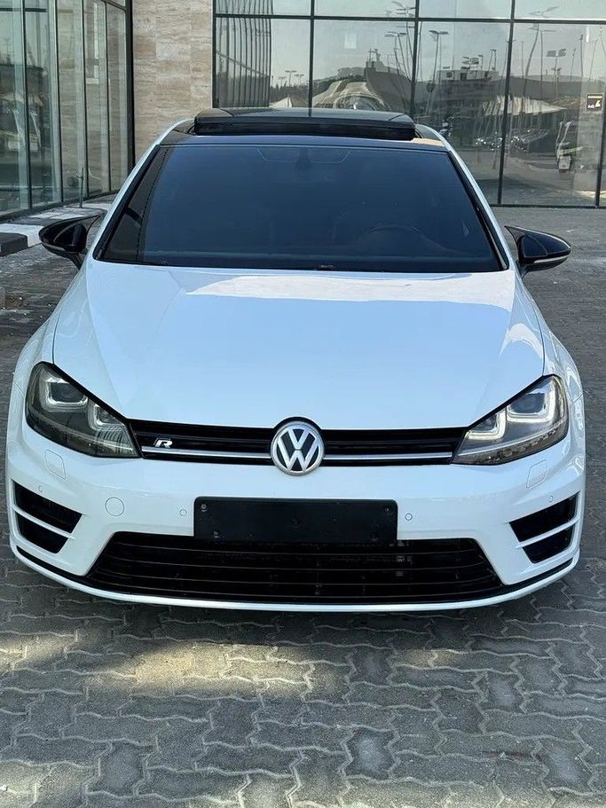2015 model year, Volkswagen Golf R VII generation, white five-door hatchback, all-wheel drive, and a 300 hp 2.0-liter gasoline turbo engine. The robotic automatic transmission (AMT) complements the dynamic nature of the car. Mileage: 168,000 km, one owner, GCC regional specification. This Golf R combines confident dynamics with the practicality of a hatchback. A powerful engine and all-wheel drive provide good acceleration and grip on various roads, while the compact dimensions make the car convenient for everyday use. Combined with its distinctive exterior and high-quality